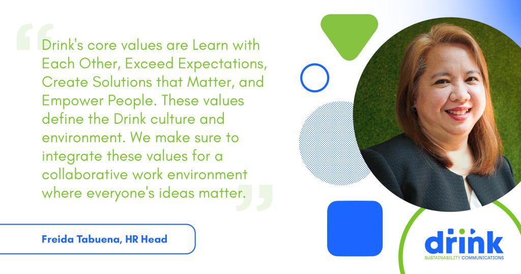“Drink’s core values are Learn with Each Other, Exceed Expectations, Create Solutions that Matter, and Empower People. These values define