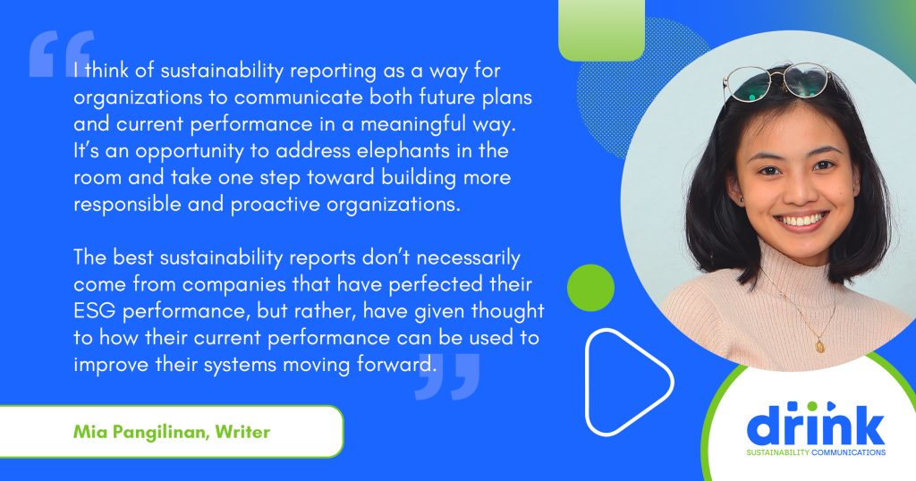 “I think of sustainability reporting as a way for organizations to communicate both future plans and current performance in a